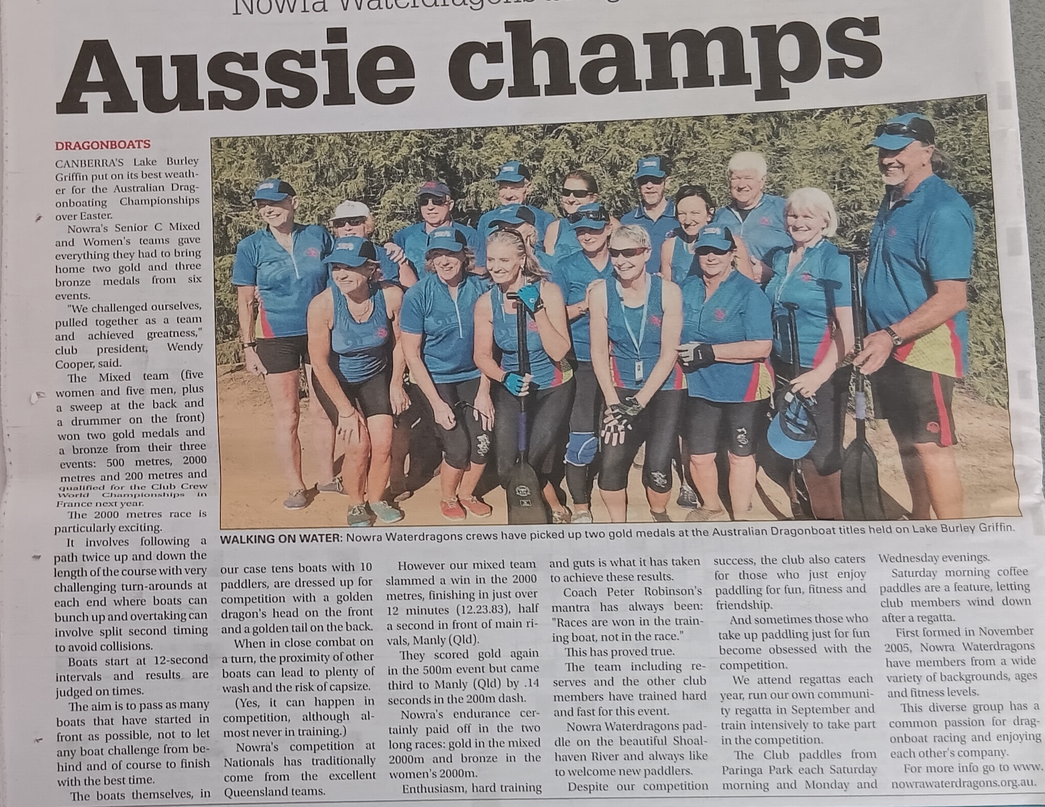 ARTICLE: Waterdragons paddle home with a swag of national medals. [11 June 2025]. View. Or read online (subscription required).